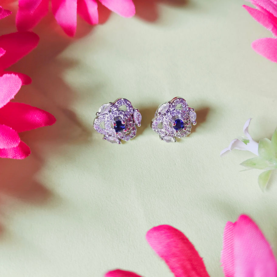 American Diamond Stone Green Stone Designer Earrings – Silver Finish