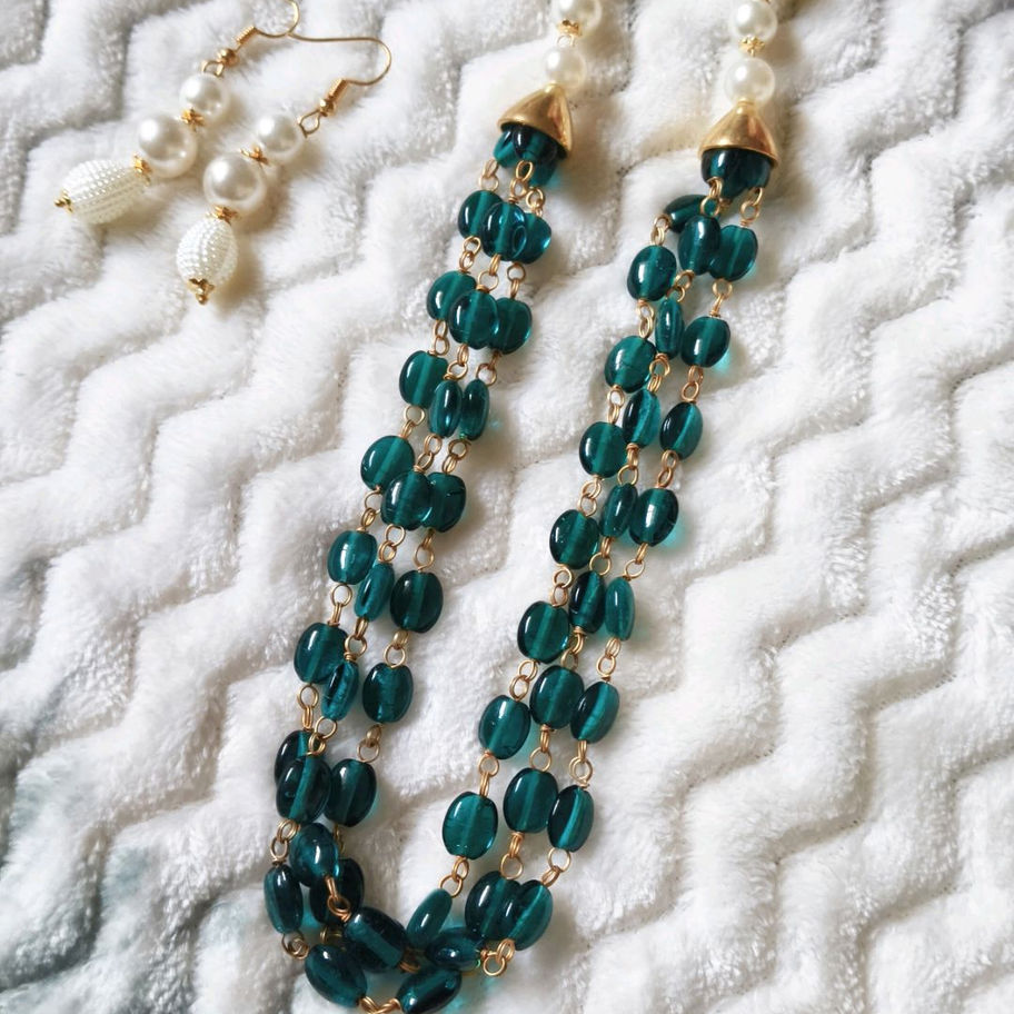 Royal Green Stone 3-Layer Necklace Set – Grace in Every Strand